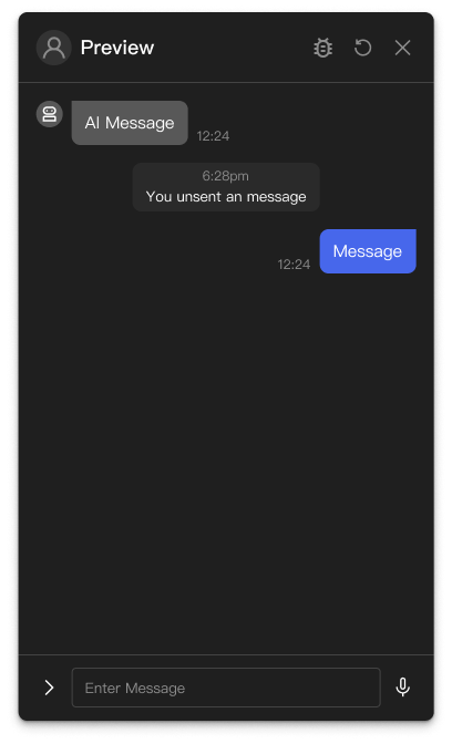 Hint 在聊天介面中以置中且較為低調的樣式顯示,通常用於顯示系統狀態變更、操作確認或輔助提示資訊。