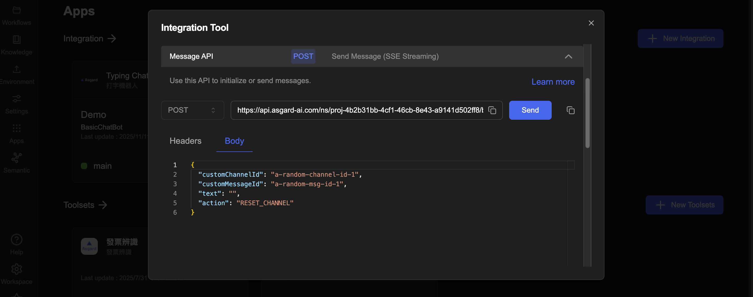 Asgard 的 Integration Tool 讓您直接在瀏覽器測試 Asgard API,不用再額外開 Postman。