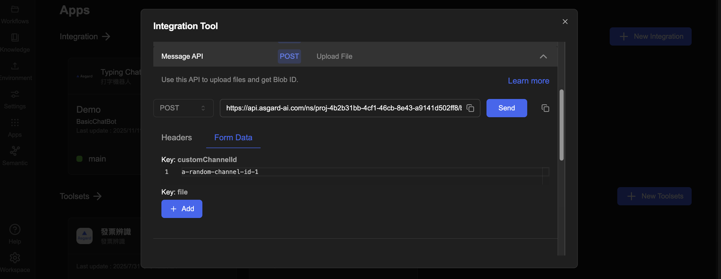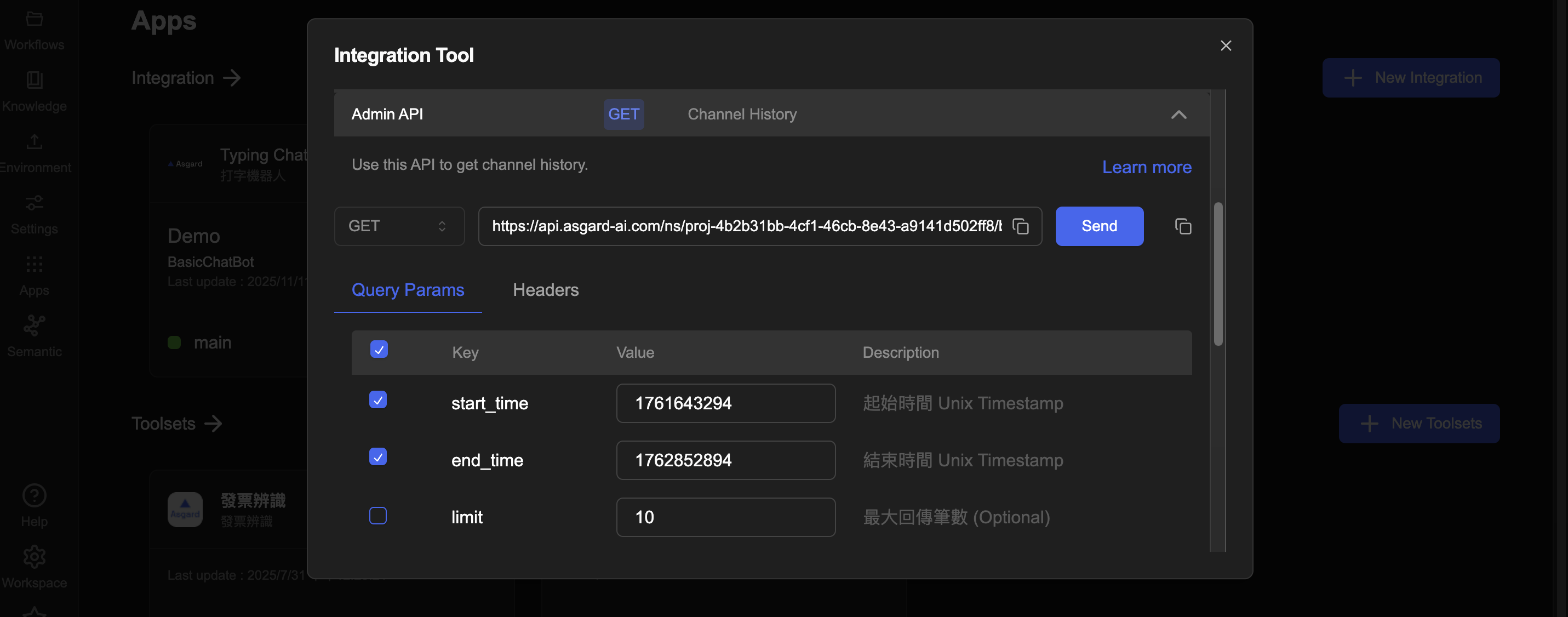 Asgard 的 Integration Tool 讓您直接在瀏覽器測試 Asgard API,不用再額外開 Postman。
