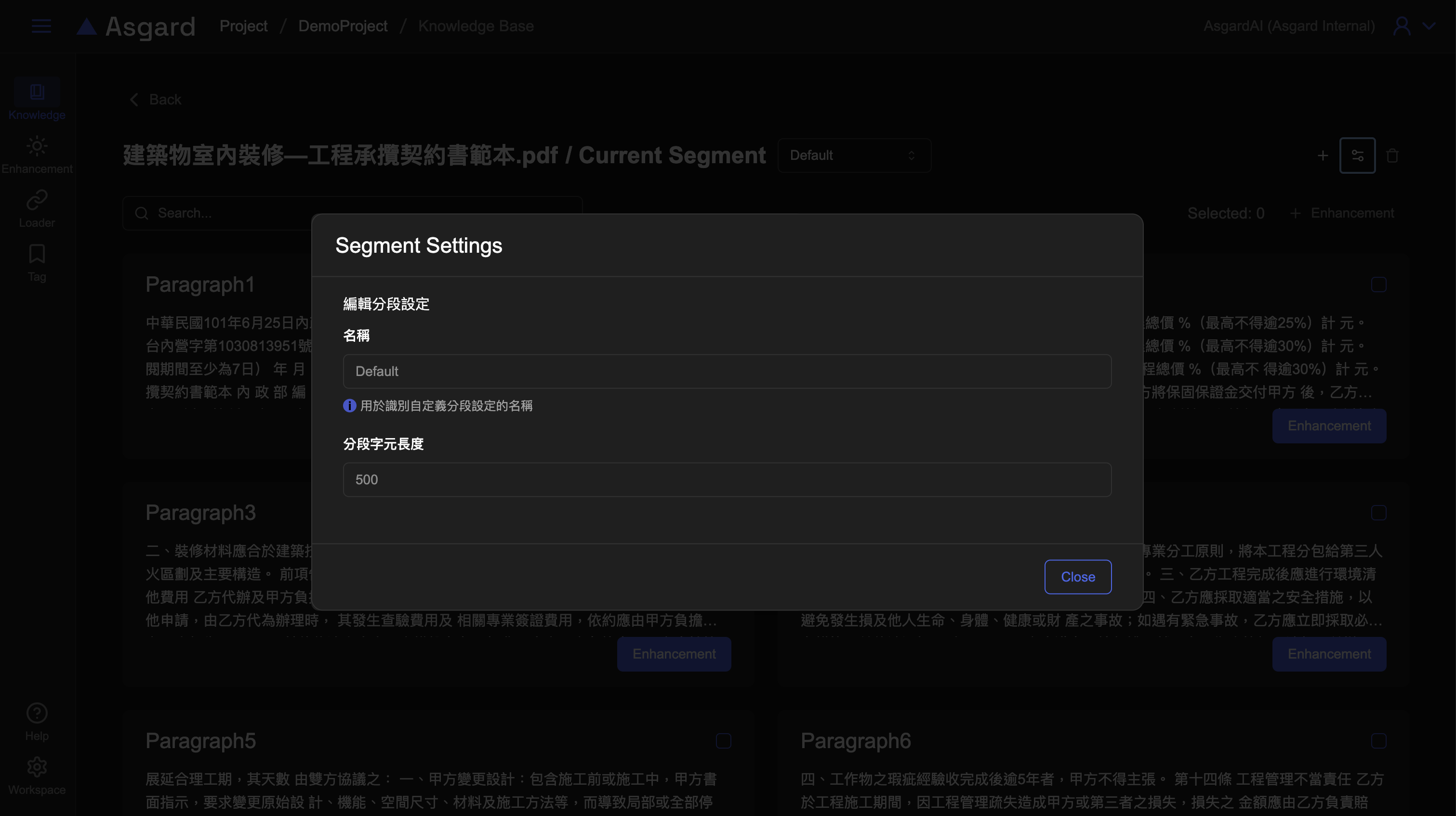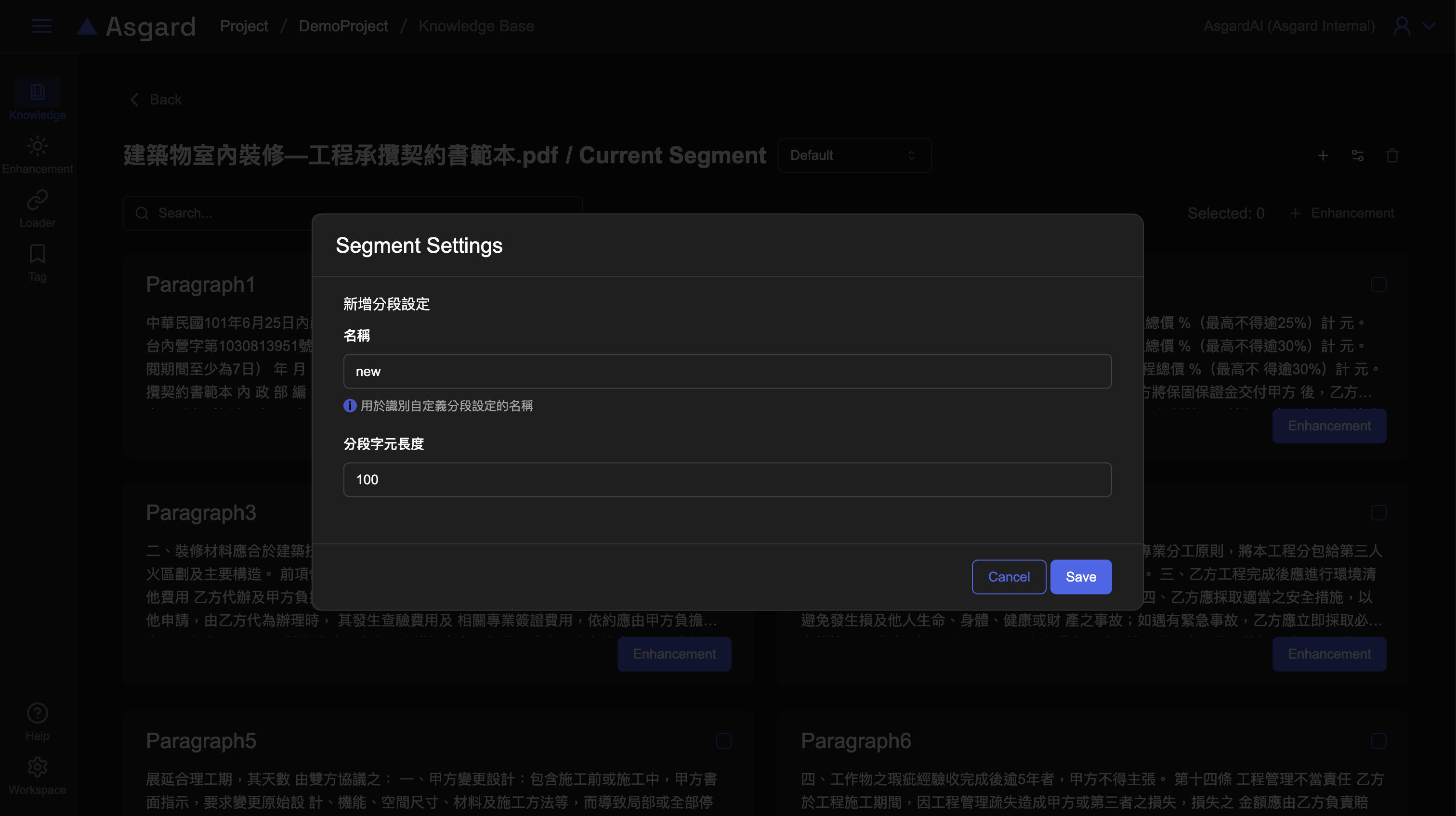 設定名稱與分段字元長度後儲存即可,此時新的分段為處理中,待處理完成才能檢視。
