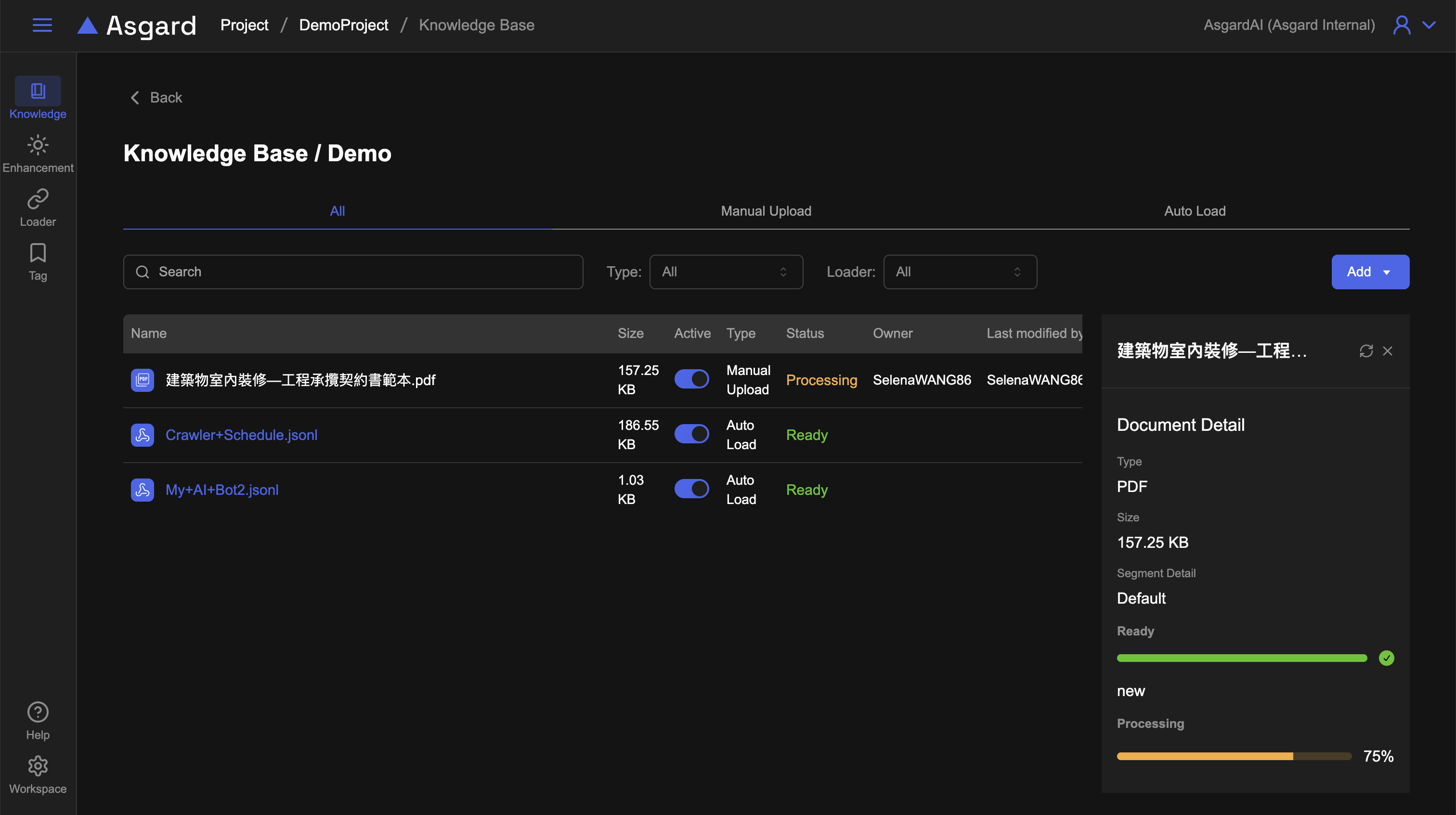 當分段皆處理完成,列表會顯示Ready;只要有一筆分段正在處理中,該檔案就會顯示為處理中。
