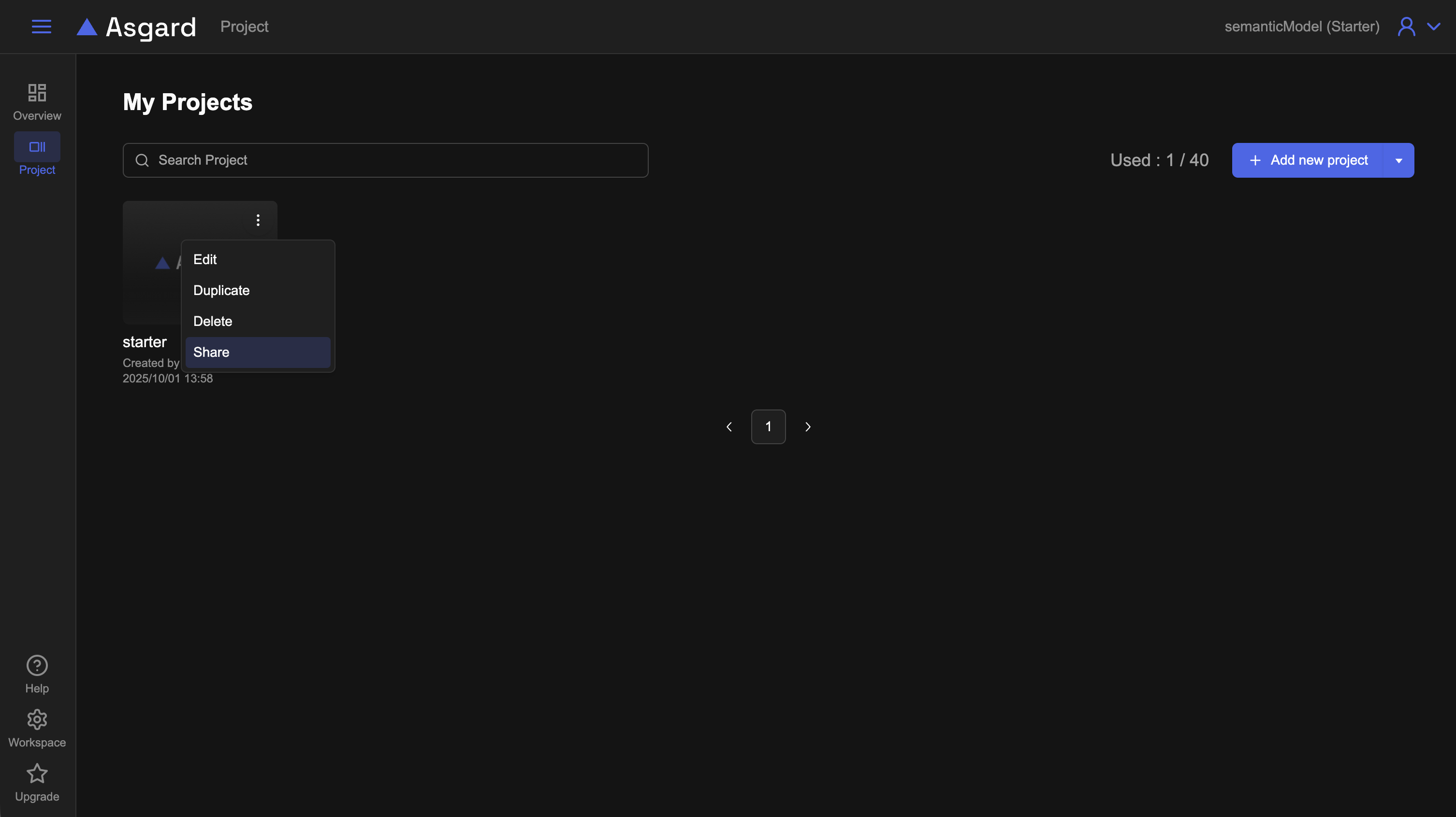Asgard 提供了快速分享 Project 的功能,讓 Project 能夠跨 Workspace 分享,提高效率。