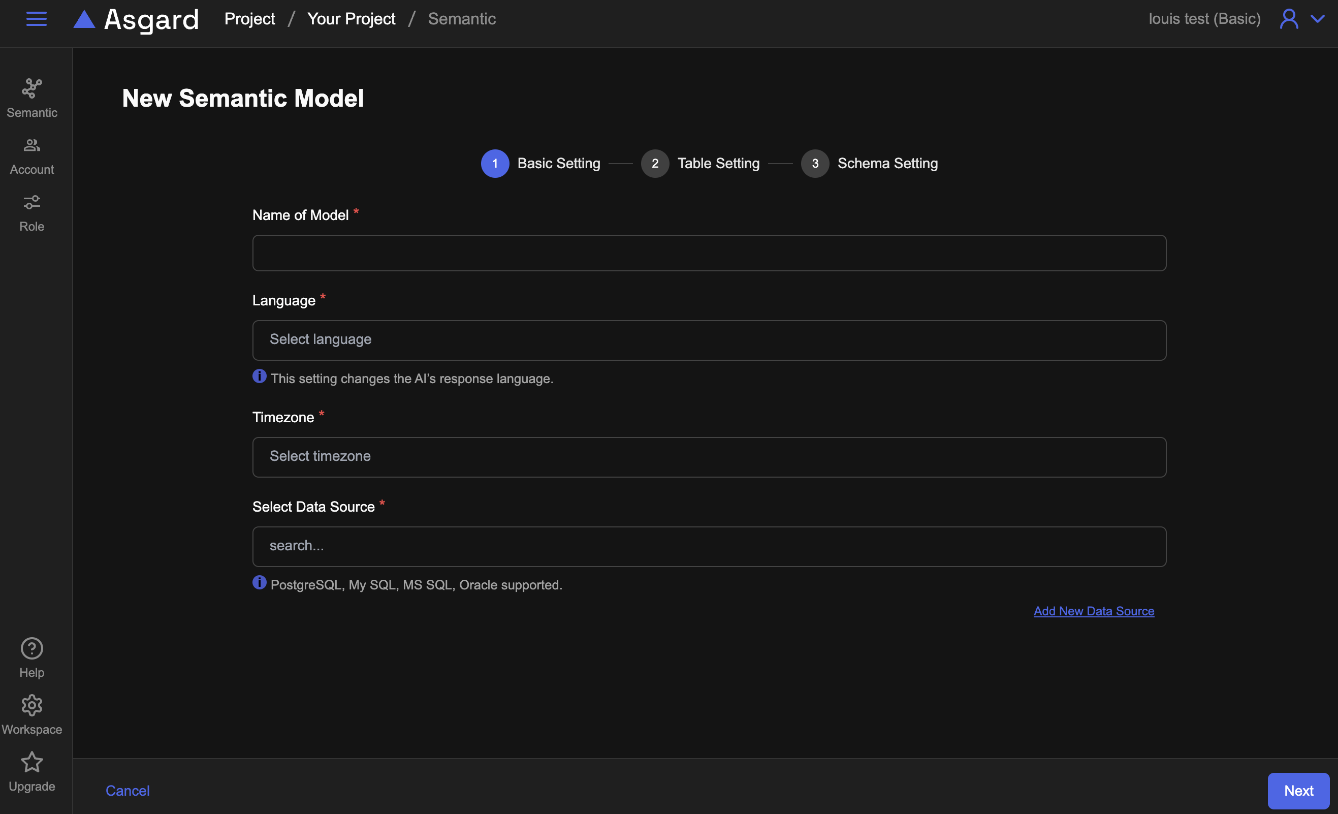 點擊左側功能列 Semantic 進到語意模型頁面,點擊「Add New Model」建立。