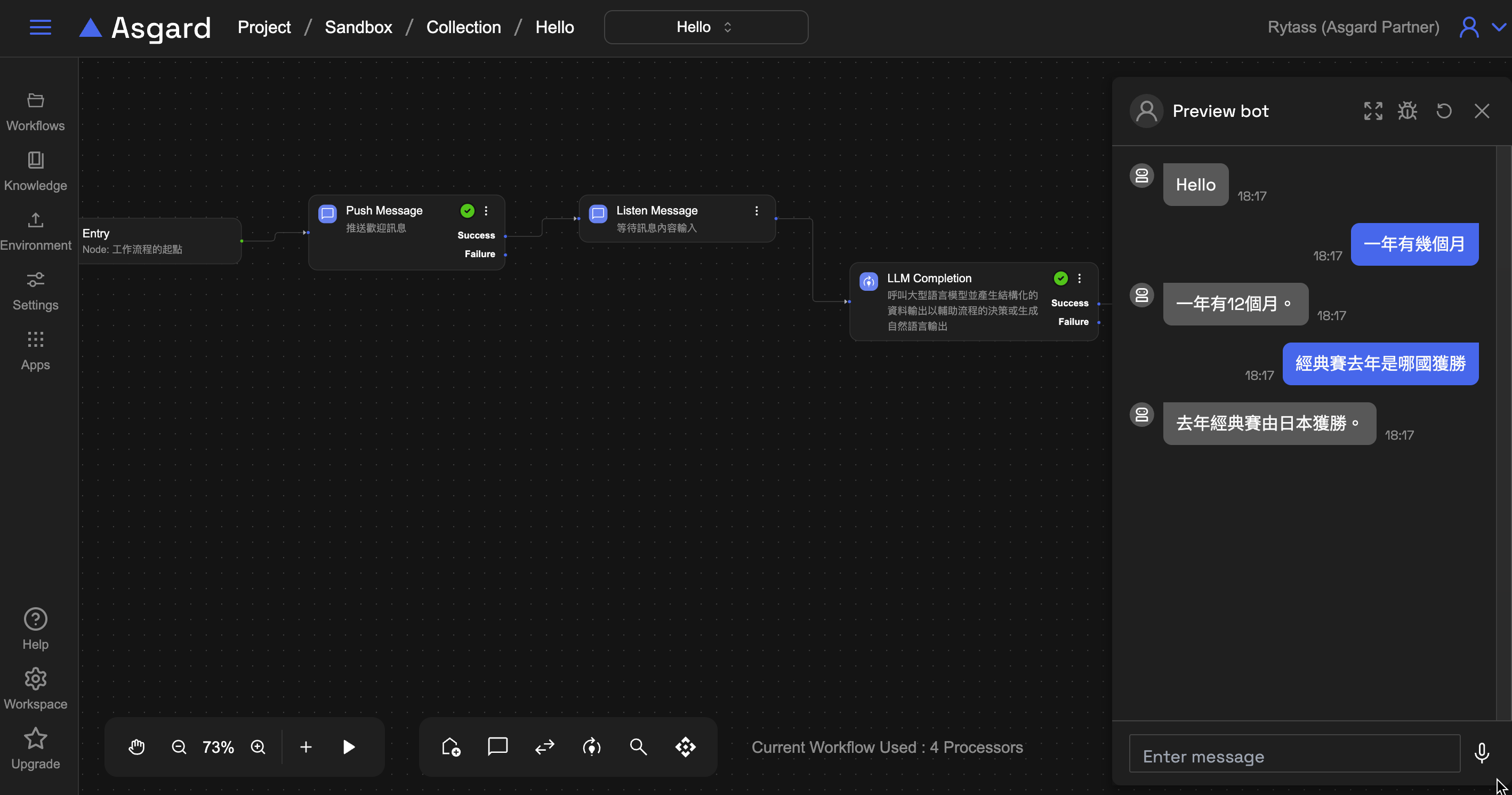 在 Asgard 中建立 AI 聊天機器人或互動式流程時,理解訊息的上下文 是提升回應品質的關鍵。不論是引導大型語言模型(LLM)根據過往對話產生回應,還是建立具備記憶能力的互動流程,能夠存取對話歷史都是不可或缺的功能。