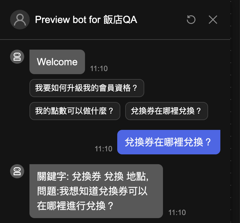 此時再次預覽可以看到更簡潔的對話回覆。
