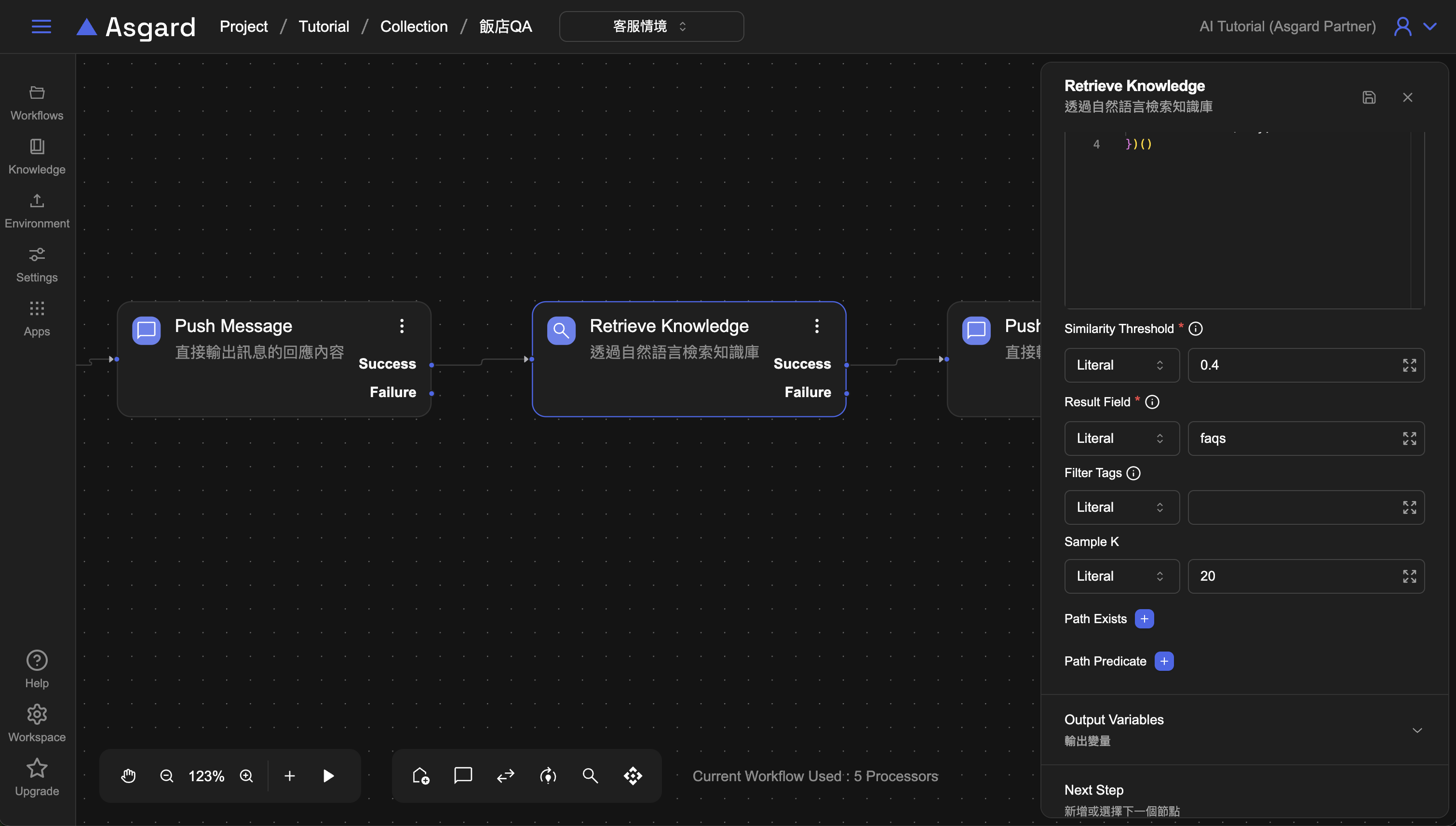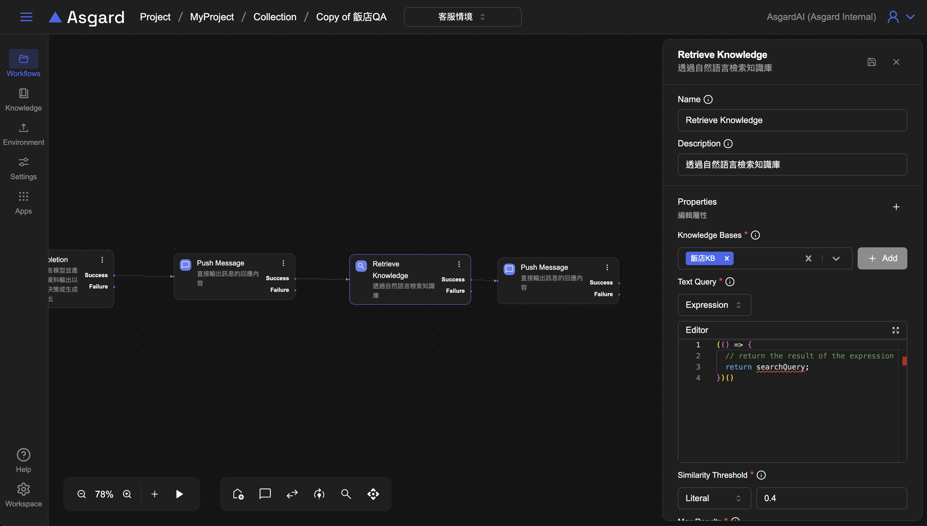 將 Retrieve Knowledge 的內容使用 Push Message 印出來。
