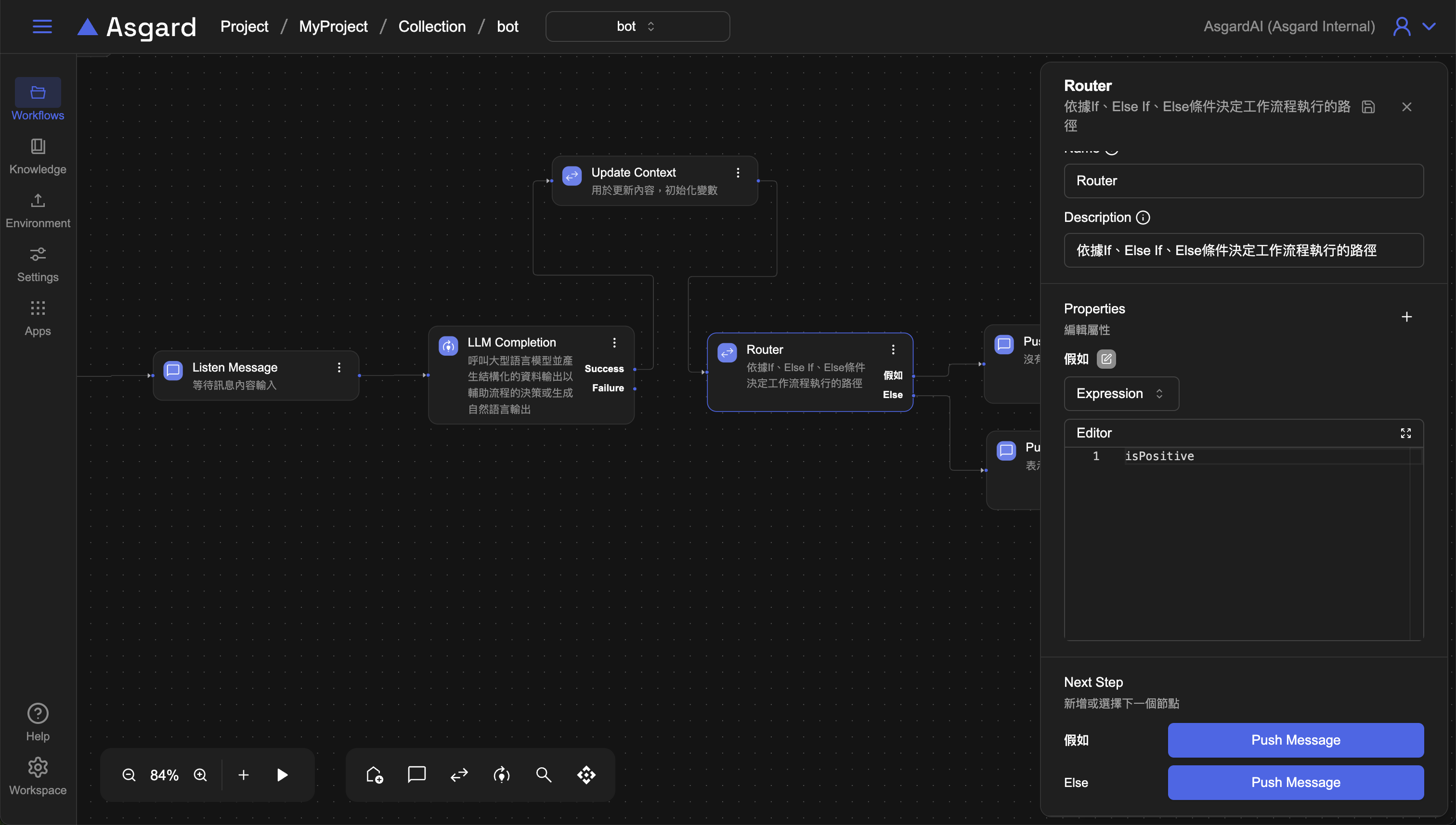 Router 新增一個 Router 依據 If, Else 等條件來決定工作流程執行的路徑。