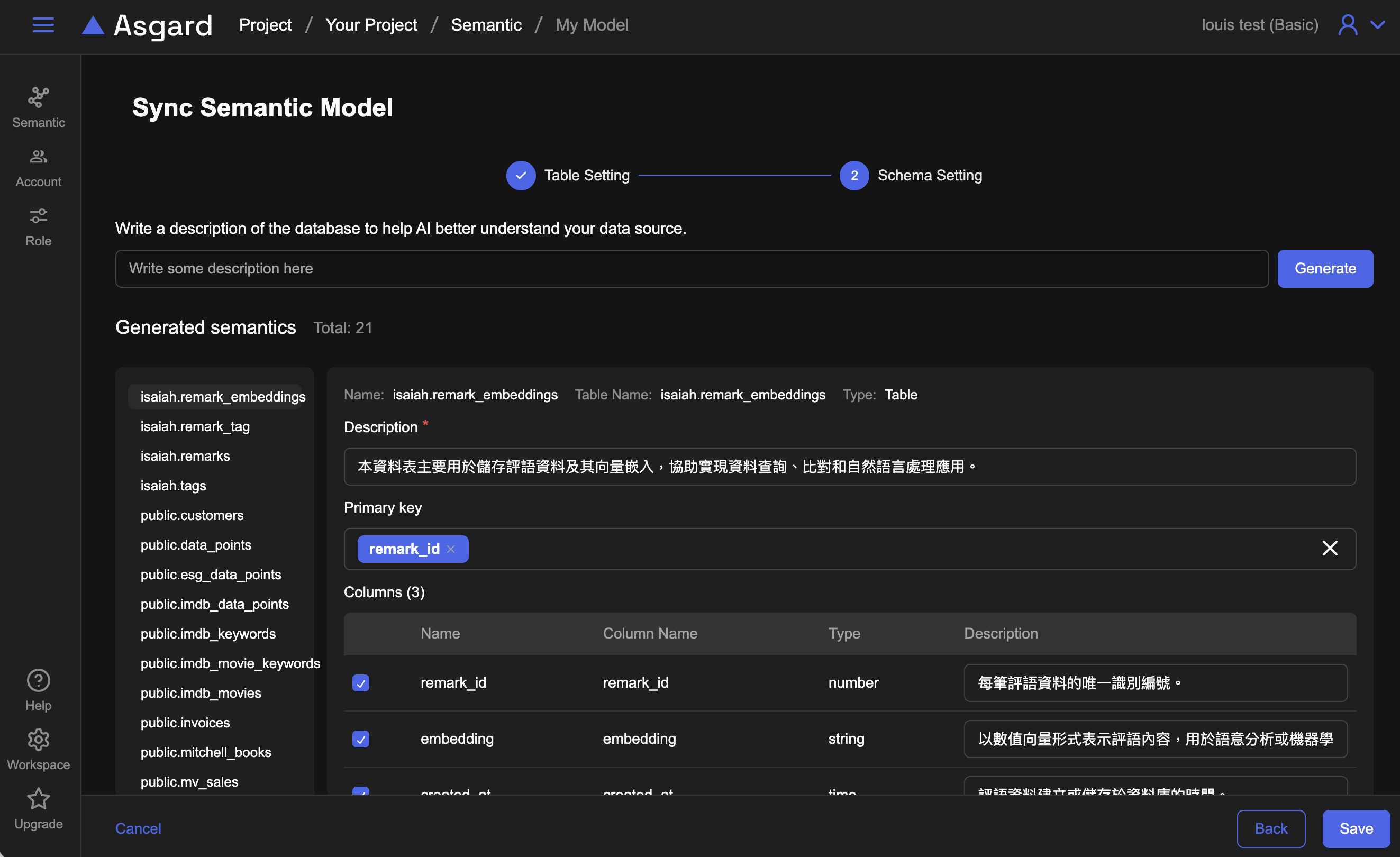 點擊下方 Table 按鈕,可以重新跟現有 Database 對標,把新 Table 與 Column 加進來或是移除不需要的資料。